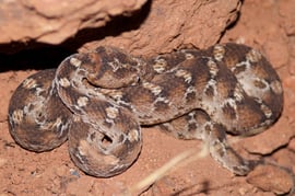einer Schlange (wahrsch. Westafrikanischen Sand- rasselotter). Zum Glück hat sie nur «gerasselt» und nicht zugebissen.