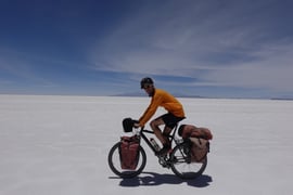 Fahrt über den Salar Uyuni. Schön flach aber stellenweise holprig.