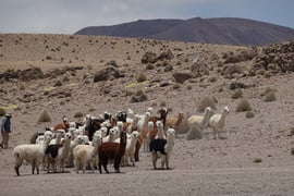 Eine Schar Lamas, und Monica findet, dass sie freundlicher dreinschauen als jene in der Schweiz.