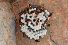 Im Schatten einer Felswand bauen emsige Wespen kleine Nester.