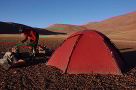 Nach einer wiederum kalten Nacht auf über 4000 Meter über Meer geht es nun fast 3000 Meter hinunter.