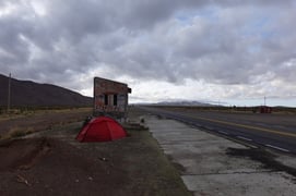 Hier haben wir in einem unbenutzten Lama-Gehege einen windgeschützen Übernachtungsplatz gefunden.