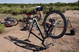 Der erste Platten muss geflickt werden – Büschen mit sehr grossen und starken Stacheln sei Dank.