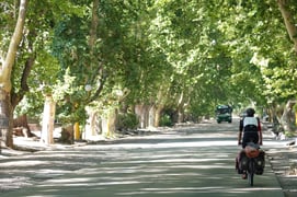 Nach rund fünf Stunden Schlaf sind wir bereits wieder unterwegs und geniessen lange Alleen entlang der Hauptstrasse.