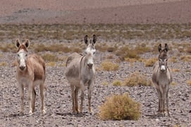 Wir werden von grauen, braunen, weissen und schwarzen Eseln genauestens beäugt.