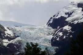 Wir sehen von der Strasse aus schöne Gletscher.